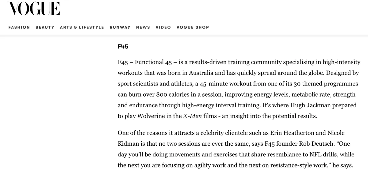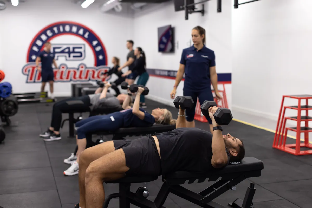 F45 stands for 'Functional 45 minute' HIIT workouts. Our classes are a mix of cardio and strength based workouts geared towards every day movement.